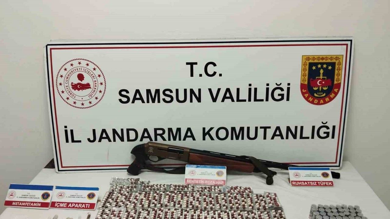 Edinilen bilgiye göre, Samsun’da uyuşturucu ile mücadele kapsamında jandarma ekiplerince yapılan çalışma sonucu A.B.’nin (26) uyuşturucu madde ticareti yaptığı bilgisine ulaşıldı. Jandarma Kaçakçılık ve Organize Suçlarla Mücadele Şube Müdürlüğü, İstihbarat Şube Müdürlüğü ve İlkadım İlçe Jandarma Komutanlığı ekipleri tarafından A.B.’nin İlkadım ilçesi Rasathane Mahallesi’nde bulunan ikametine operasyon düzenlendi. Yapılan aramalarda, 663 kapsül sentetik ecza hap, 7 adet cam uyuşturucu kullanma aparatı, 0.90 gr metamfetamin, 32 adet fişek ve1 adet ruhsatsız av tüfeği ele geçirdi. Olayla ilgili A.B. gözaltına alındı. Soruşturmayı derinleştiren jandarma ekipleri olayla bağlantılı olarak T.F.Y.’yi (19) de yakalayarak gözaltına aldı.