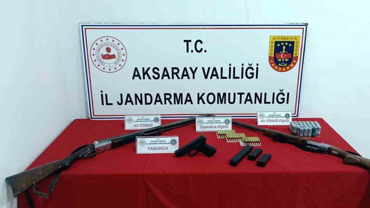 Kaçakçılığın önüne geçilmesi, yasa dışı yollardan silah ticaretinin önlenmesi çerçevesinde çalışmalar yapan İl Jandarma Komutanlığı İstihbarat ile Kaçakçılık ve Organize Suçlarla Mücadele (KOM) Şubesi ekipleri bir evde silah ve mühimmatlar bulunduğu bilgisine ulaştı. Bilgiler doğrultusunda Aksaray Cumhuriyet Başsavcılığı koordinesinde Aksaray merkezdeki şahsın evine operasyon düzenleyen jandarma ekipleri, H.T. isimli şahsı gözaltına alırken, adreste yapılan aramalarda 1 adet ruhsatsız tabanca, 2 adet ruhsatsız av tüfeği, 35 adet av tüfeği fişeği ve 144 adet tabanca fişeği ele geçirildi. Şüpheli ifadesi alınmak üzere İl Jandarma Komutanlığına götürülürken şahıs hakkında adli işlem başlatıldı.