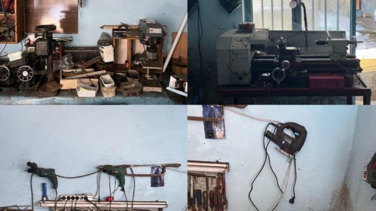 556 adet tabanca ve tüfek yayı, 4 adet tetik tertibatı, 3 adet pafta takımı, 1 adet tabanca şarjörü, 1 adet tabanca kabzası, 2 adet taşlama makinesi, 1 adet kaynak makinesi, 1 adet kıl testere, 1 adet diş açma aparatı, 2 adet kurşun dökme kaşığı, 22 adet 9 milimetre kurusıkı tabanca fişeği, 2 adet 7.65 milimetre tabanca fişeği, 1 adet tezgah, pense, boru anahtarı ve diğer Aletlerden oluşan anahtar takım seti ele geçirildi.
