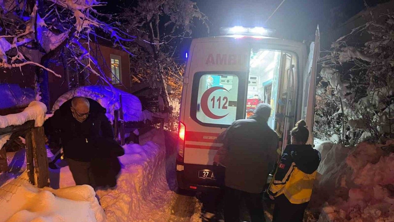 Kastamonu’nun İnebolu ilçesi Hayrioğlu köyü Fatırız Mahallesi’nde yaşayan Satılmış Şahin (88) ve eşi Kamile Şahin (81) nefes darlığı şikayeti yaşamaya başladı. Çiftin oğulları Mustafa Şahin, 112 Acil Çağrı Merkezi’ni arayarak ihbarda bulundu. Sağlık ekipleri, ilçeye 23 kilometre uzaklıkta bulunan ve yaklaşık 80 santimetreye ulaşan kar sebebiyle yolu kapanan köye ulaşamayınca İnebolu Kaymakamlığından yadım istedi. İnebolu Kaymakamlığı Köylere Hizmet Götürme Birliği ve İl Özel İdaresi ekipleri, iş makineleriyle köyün yolunu açtı. Ambulans da iş makinesi yardımıyla çekilerek köye kadar götürüldü. Köye ulaşan sağlık ekipleri tarafından ilk müdahalesi yapılan yaşlı çift İnebolu Devlet Hastanesi’ne kaldırıldı.