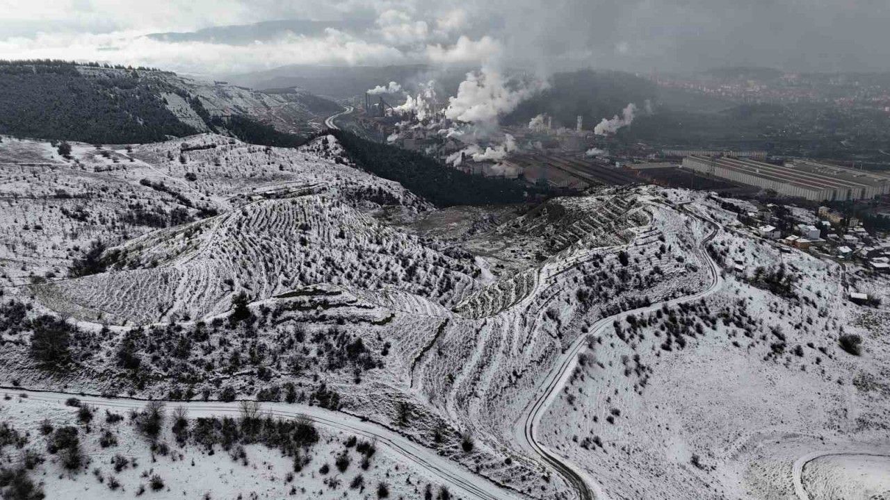Karabük’te gece yarısından itibaren etkili olan kar yağışı sonrası bir kısmı beyaz örtüyle kaplanan şehir dronla görüntülendi.
