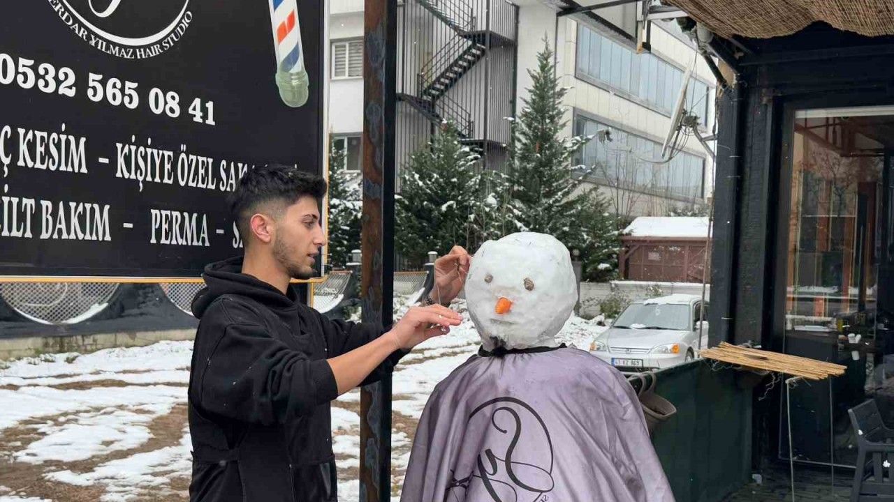 Kocaeli’nin İzmit ilçesinde bir berber, arkadaşlarıyla birlikte yaptığı kardan adama önce sakal ekledi, sonra da tıraş etti. Kardan adamın tıraş edildiğini gören vatandaşlar hayrete düştü.