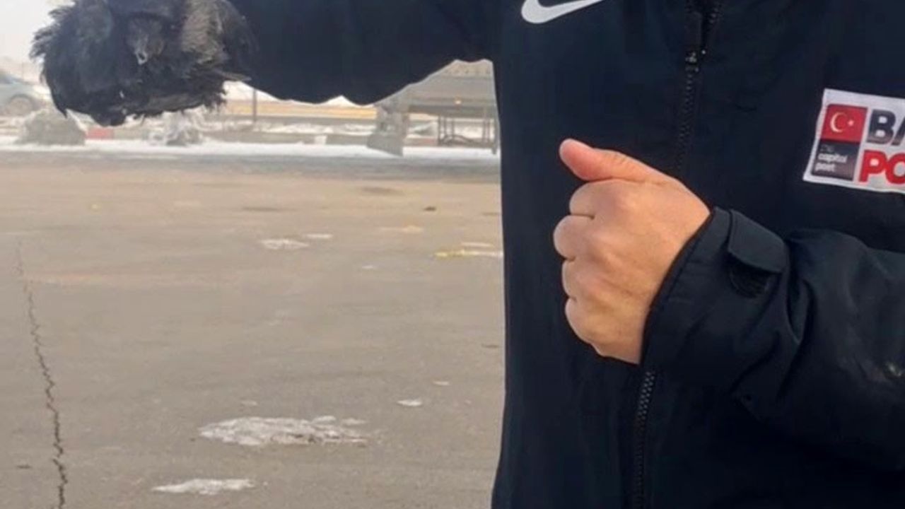 Doğu Anadolu Bölgesi’nde etkili olan dondurucu soğuklar, sadece insanları değil, hayvanları da olumsuz etkiliyor. Çevre yolunda bir karga donarak öldü.