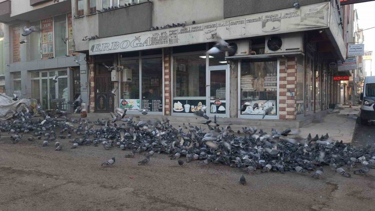 Kars’ta duyarlı vatandaş, her gün yüzlerce güvercini besleyerek örnek bir davranış sergiliyor. Soğuk kış günlerinde yiyecek bulmakta zorlanan kuşlar için kendi imkanlarıyla yem temin eden duyarlı vatandaş, onları aç bırakmamak için her gün aynı saatte besleme yapıyor.