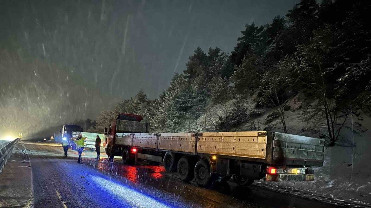 Jandarma trafik ekipleri de yolda mahsur kalan sürücülere yardımda bulunarak yoldaki ulaşımın aksamaması için seferber oldu.