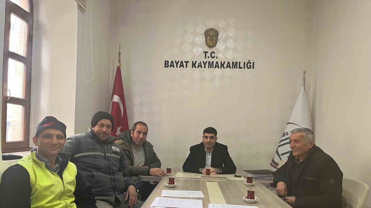 Bayat Kaymakamlığı İlçe Özel İdaresi ekipleri geçtiğimiz hafta yaşanan olumsuz hava şartlarından dolayı köy yollarının açık kalması için yoğun çaba gösterdi. Kaymakam Vekili Öztürk ise ekiplerin dinlenme alanını ziyaret ederek sabah çaylarına konuk oldu. Öztürk ziyaret sonrası sosyal medya hesabından yaptığı açıklamada "Her sabah köylerimize hizmet vermek için göreve çıkan Bayat İlçe Özel İdare personellerimiz ile sabah çayında bir araya geldik. Vermiş oldukları hizmetlerden dolayı personellerimize teşekkür ediyor, işlerinde kolaylıklar diliyoruz" ifadelerine yer verdi.