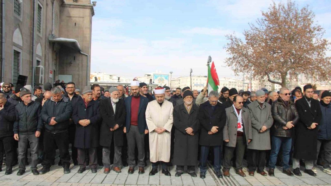 Kayseri Gönüllü Kültür Kuruluşları ile Filistinli Dayanışma Platformu tarafından düzenlenen programda, İsrail ve Amerika Birleşik Devletleri protesto edildi. Cumhuriyet Meydanı’nda bulunan Bürüngüz Camii’nde toplanan vatandaşlar; İsrail’in Filistin’e düzenlediği saldırıda hayatını kaybedenler için gıyabi cenaze namazı kıldı. Namaz İl Müftüsü Dursun Ayvaz tarafından kıldırıldı. Grup adına açıklama yapan Mehmet Emin Aslantürk, Trump’ın Gazze söylemlerinin asla kabul edilemez olduğunu aktararak, "Gazze Müslümanların öz yurdudur. Gazze ve Filistin’de 7 Ekim 2022’de başlayan ve 471 gün süren Hamas’ın şanlı direnişi ve İsrail soykırımı, ateşkes anlaşması ile sona erdi. Bu süre içerisinde karadan, havadan ve denizden devam eden İsrail saldırılarında çoğunluğu çocuk ve kadın olmak üzere 60 binden fazla insan şehit oldu. 100 binden fazlası da yaralandı. Okullar, camiler, hastaneler dahil tüm yerleşim birimleri vahşi saldırıların hedefi olarak yerle bir edildi. Bu vahşi saldırılarda gazeteciler ve sağlıkçılar da hayatlarını kaybetti. Amerika Birleşik Devletleri’nin yeni seçilen başkanı Trump; tıpkı önceki başkanları gibi ülkesinin İsrail’in emrinde olduğunu ilan etti. Netanyahu ile Gazze’yi boşaltarak Müslümanları öz yurtlarından çıkarma konusunda anlaştığını duyurdu. Trump, konu ile ilgili yaptığı açıklamada 471 gün vatanlarını katil işgalcilere karşı savunan Gazze halkını Mısır ve Ürdün’e göndereceğini, Gazze’nin de Amerika Birleşik Devletleri’ne verilip tatil beldesi yapılacağını duyurdu. Bizler; 471 gün süren işgalcilere karşı verdiği şanlı mücadele için Hamas’ı tebrik ediyoruz. 2 yıla yakın devam eden İsrail saldırılarına karşı hayatını kaybedenlere rahmet, yaralılara acil şifalar diliyoruz. Bugüne kadar olduğu gibi bundan sonra da Gazze ve Filistin’e insani yardımların devam etmesi gerektiğini ve Filistin halkının asla yalnız bırakılmayacağını bildiriyoruz. Amerika Birleşik Devletleri Başkanı Trump’ın Gazze ve Filistin halkının öz yurtlarından sürme planını insanlık adına asla kabul edilemez buluyor, şiddetle reddediyor, şeytani bir plan olarak reddediyoruz" dedi.