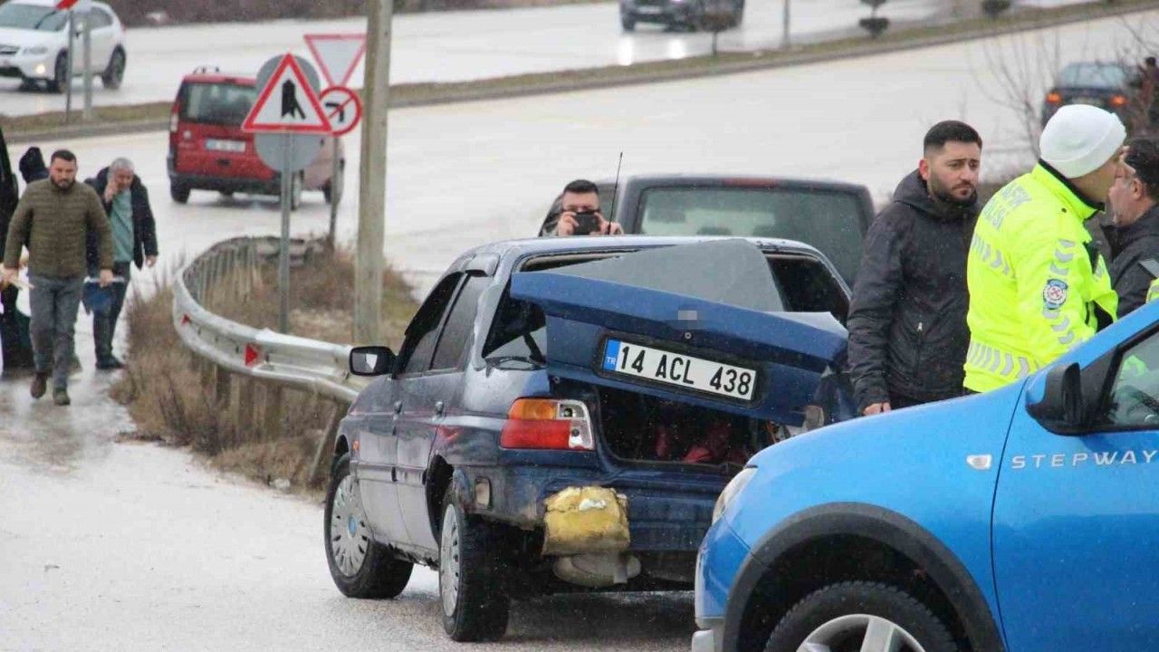 Bolu’da bariyerlere çarpan bir otomobile yardım etmek için yol kenarında duran cipe, arkadan gelen araç çarptı. 4 aracın karıştığı kazada maddi hasar meydana geldi.