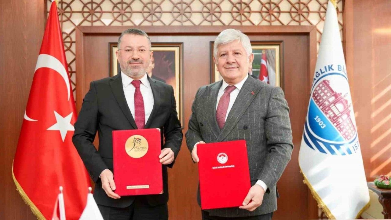 Protokol, KBÜ Rektörü Prof. Dr. Fatih Kırışık ile Sağlık Bilimleri Üniversitesi Rektörü Prof. Dr. Kemalettin Aydın arasında imzalandı.