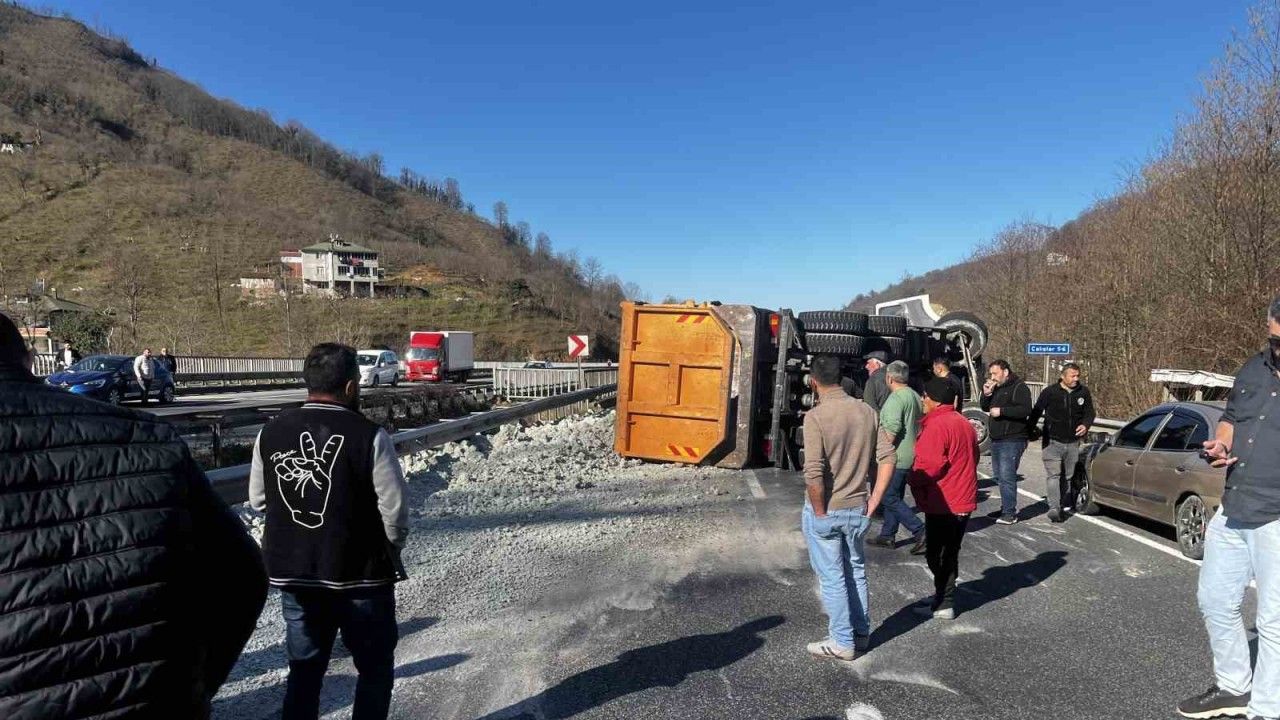 Ordu’nun Fatsa ilçesinde kil yüklü kamyon yola devrildi. Kaza nedeniyle Karadeniz Sahil Yolu yaklaşık 1 saat ulaşıma kapandı, sürücü yaralandı.