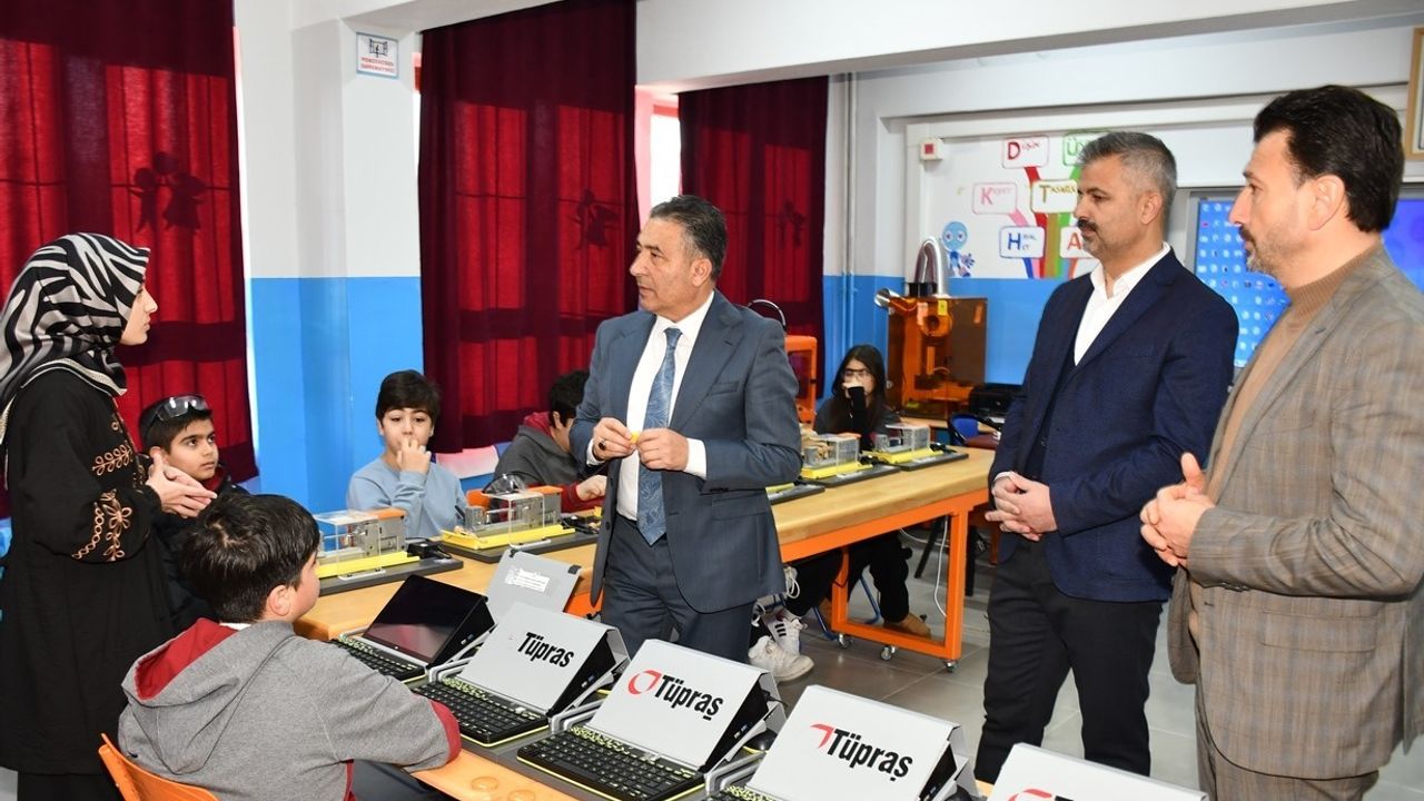 Millî Eğitim Müdürü Rahmi Güney, Müdür Yardımcısı Hamza Aygün, Tüpraş Kurumsal İletişim Direktörü Çiler Teber ve Kurumsal İletişim Uzmanları Yasemin Başçavuşoğlu ile Fulya Karakuz, projeye dahil olan okullardan Tüpraş Ortaokulu’nu ziyaret etti. Ziyaret kapsamında atölyelerde incelemelerde bulunan heyet, Okul Müdürü Hacı Mehmet Yazıcı ve Teknoloji Tasarım Öğretmeni Azize Özata’dan öğrencilerin çalışmaları hakkında bilgi aldı.
