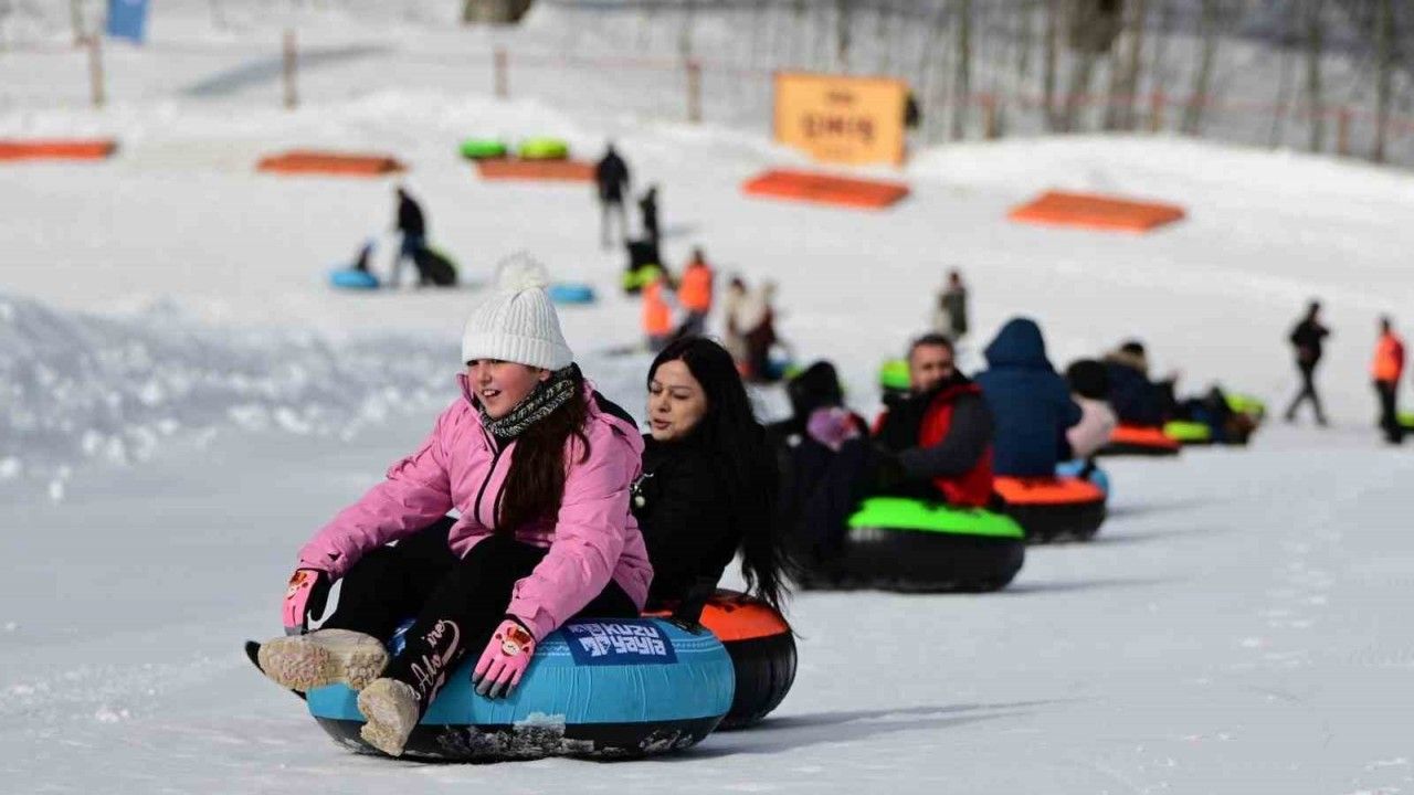 Beyaz karlarla kaplı Kuzuyayla’da coşku hız kesmeden devam ediyor. Büyükşehir’in Kuzuyayla projesinde yapımı tamamlanan kızak pisti, KARFEST etkinliği ile vatandaşların kullanımına açıldı. Şişme botlar ve kızaklarla kızak pistinden kayan kış tutkunları, hem eğleniyor hem de muhteşem hatıralar biriktiriyor. Aileler, arkadaşlar ve kış severler kızak pisti başta olmak üzere kurulan birçok etkinlik alanında gönüllerince eğleniyor. Hedikli Kar Yürüyüşü, iglo fotoğraf çekim alanı, kar motoru ile safari, kardan adam yarışması, ödüllü kar topu yarışması, seyyar salıncak, kar voleybolu gibi etkinliklere katılanlar KARFEST’in keyfini doyasıya yaşıyor.