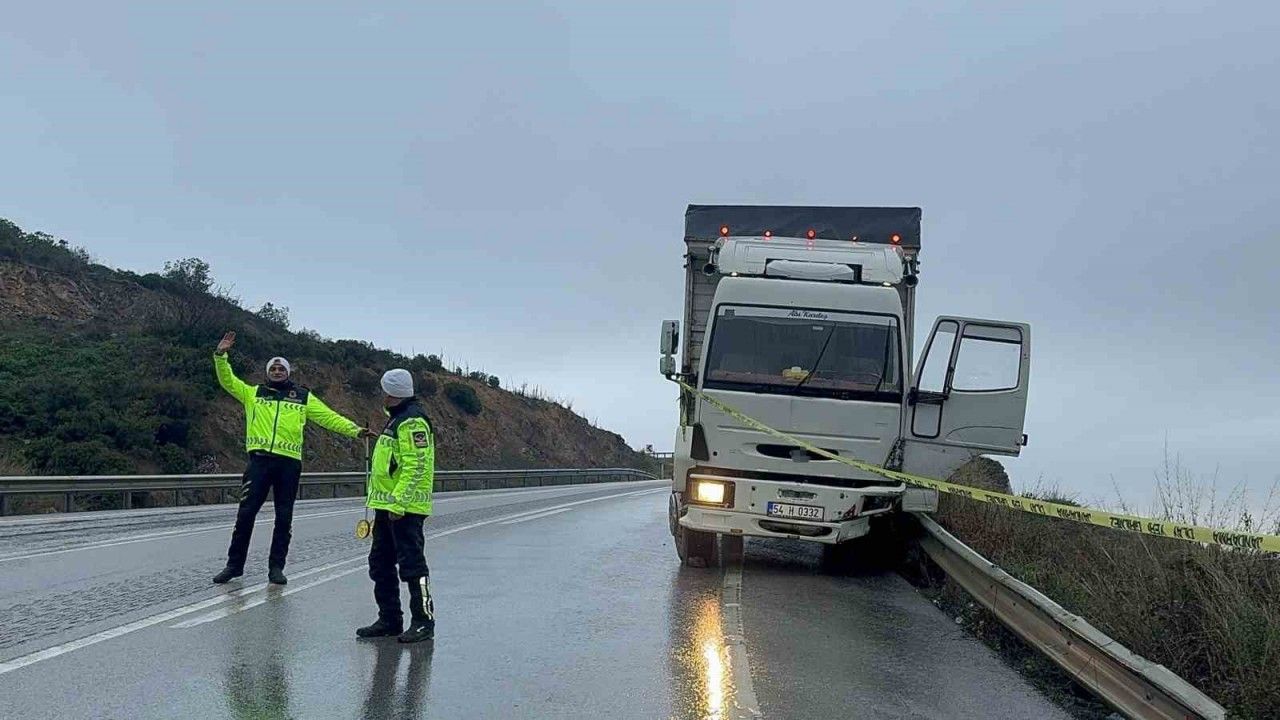 Bursa’nın İznik ilçesi, Yenişehir-İznik Yolu üzerine 54 H 0332 plakalı kamyon sürücüsünün kontrolünden çıkarak bariyerlere çarptı. Aracın uçuruma uçtuğunu zanneden sürücü kapıyı açıp aşağı atladı. Fakat kamyon sürücüsüz halde 400 metre boyunca ters yönden ilerleyip bariyerlere çarparak emniyet şeridinde durdu. İhbar üzerine Bursa İznik İlçe Jandarma Komutanlığı ekiplerince kazayla ilgili tahkikat başlatılırken, hafif yaralanan sürücü ise İznik Devlet Hastanesine sevk edildi.