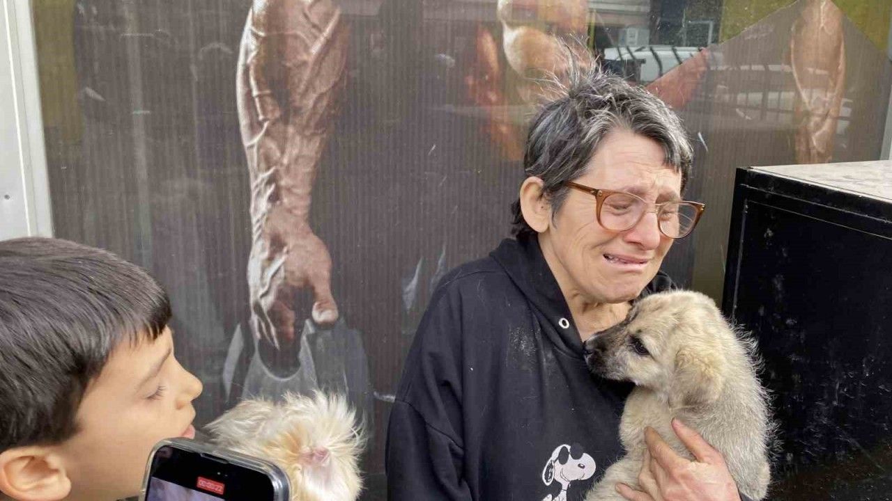 3 köpeği ve oğlu ile sokakta kalan kadın gözyaşlarına boğuldu