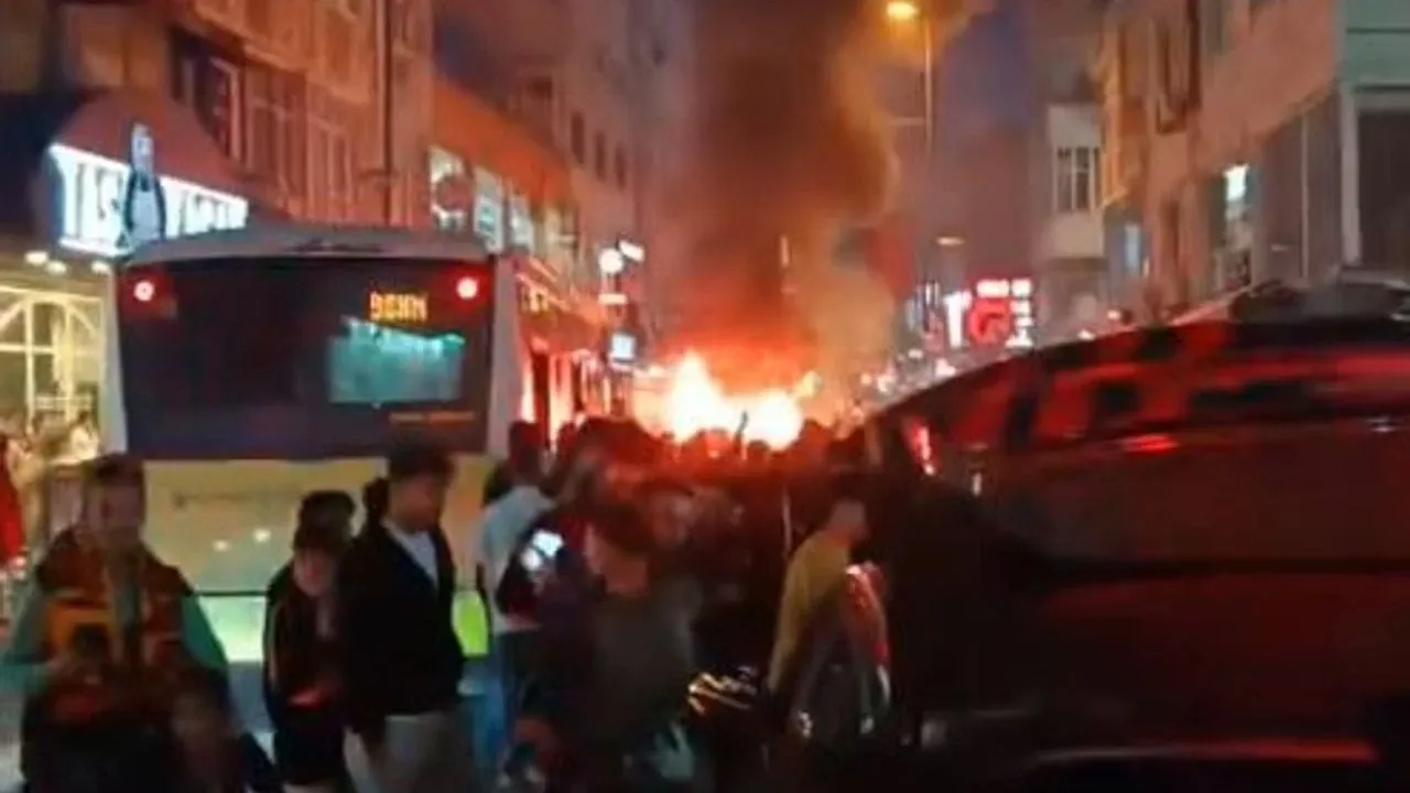 Patlatılan havai fişeklerden bazıları o sırada yoldan geçen otomobillerden birine isabet etti. Araç alevler içinde kalırken, orada bulunanlar büyük panik yaşadı. İhbar üzerine olay yerine gelen itfaiye ekipleri, yangına müdahale ederek söndürdü. Araç ise kullanılamaz hale geldi.