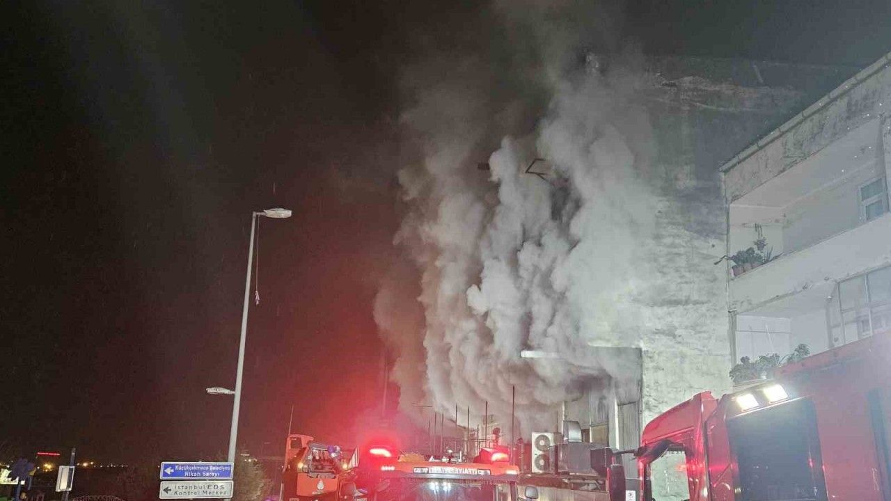 Yoğun dumanın devam ettiği yangın kontrol altına alınırken, soğutma ve duman tahliyesi çalışmaları devam ediyor.