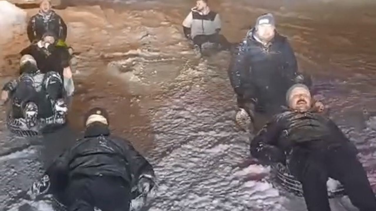 Giresun’un Dereli ilçesine bağlı Kümbet Yaylası’nda adrenalin dolu anlar yaşandı. Bir grup genç, arazi aracının arkasına bağladıkları sekiz lastiğe binerek kar rafting yaptı. Görüntüler, sosyal medyada büyük ilgi gördü.