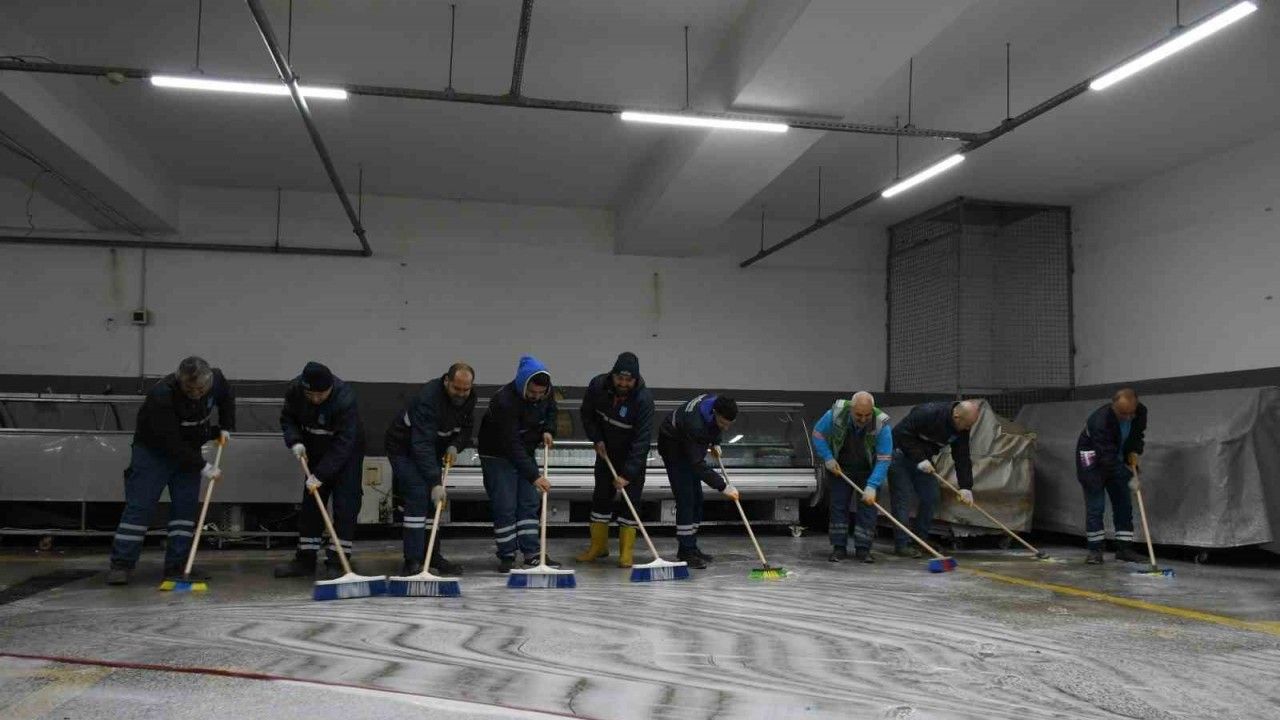 Bereketli bir gün geçirmenin verdiği mutlulukla pazarcı esnafının tezgahlarını toplamasının ardından Kapalı Pazar Yerinde bu kez Kuşadası Belediyesi Temizlik İşleri Müdürlüğü’nün yoğun mesaisi başlıyor. Özel bir ekiple Kapalı Pazar Yerine gelen Temizlik İşleri Müdürlüğü, ilk önce çevrede kalan sebze meyve ve diğer atıkları topluyor. Daha sonraysa her kat özenle süpürülüp, köpüklü sıcak suyla yıkanarak dezenfekte ediliyor. Gece geç saatlere kadar süren hummalı çalışmada Kapalı Pazar Yeri, Kuşadalıların sağlıklı ve hijyenik bir ortamda alışveriş yapabilmeleri için yeniden hazır hale getiriliyor.