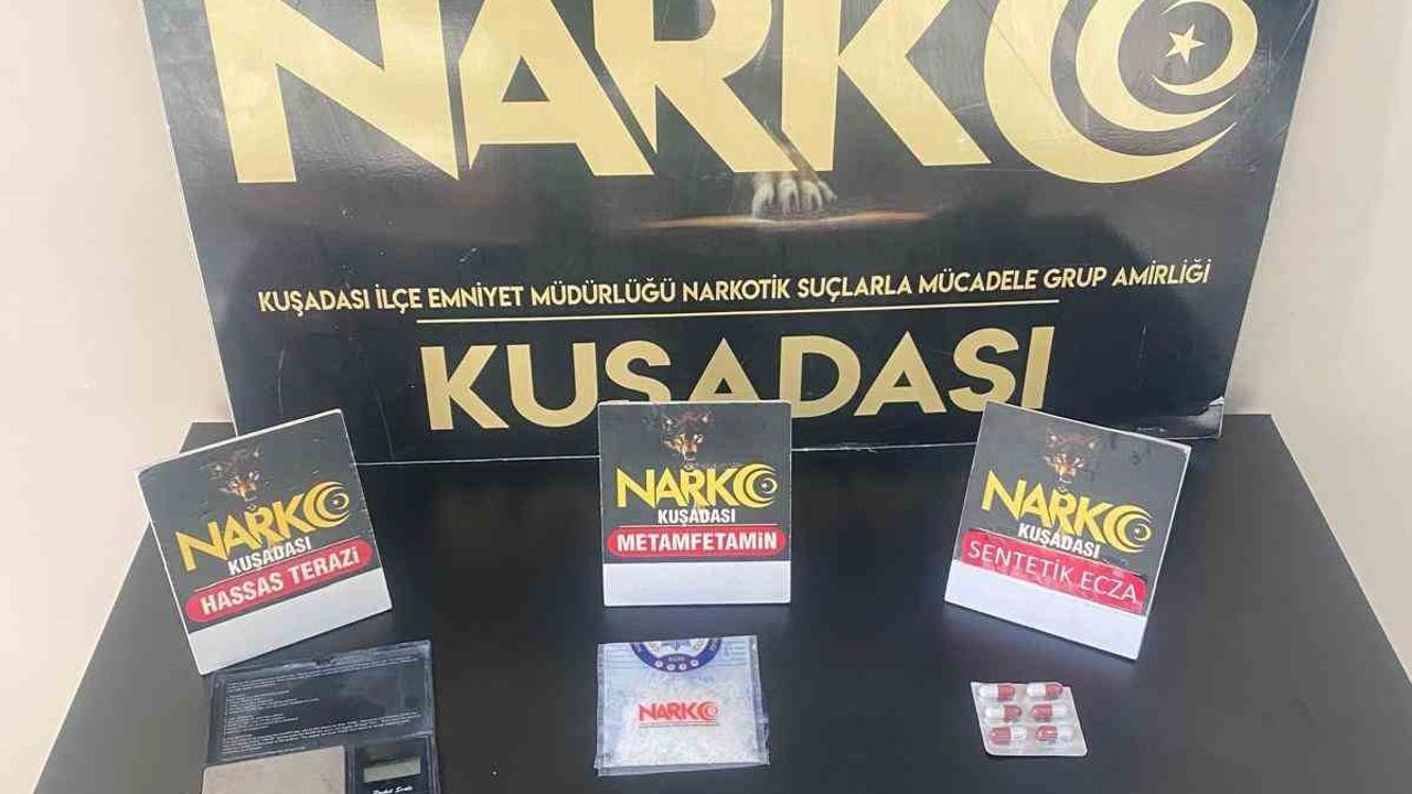Edinilen bilgiye göre, Kuşadası Narkotik Suçlarla Mücadele Büro Amirliği ekiplerince bir ikamette yapılan aramalarda; 15.97 gram metamfetamin, 6 adet sentetik hap, 1 hassas terazi ele geçirildi. Operasyonda A.P. (35) yakalanarak gözaltına alındı. Zanlı, emniyetteki işlemlerinin ardından sevk edildiği adli makamlarca tutuklanarak cezaevine gönderildi.
