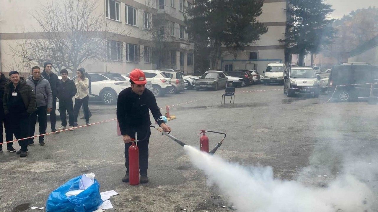 Kütahya Evliya Çelebi Eğitim ve Araştırma Hastanesinde yangın söndürme cihazlarının kullanımları, yangınlarda ilk müdahale ve yangın söndürme eğitimleri gerçekleştirildi.