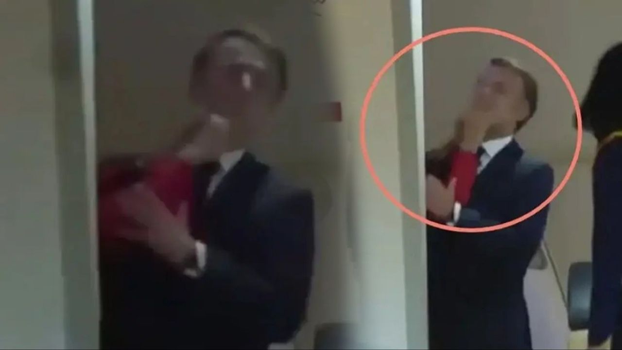Macron henüz uçağın içinde bulunduğu sırada First Lady Brigitte Macron'un, Cumhurbaşkanı Macron'un yüzüne müdahalede bulunduğu anlaşılıyor. Görüntüler sosyal medyada da tartışmayı beraberinde getirdi. Macron'un eşinden tokat yediği iddia edilen görüntülerde Fransız Cumhurbaşkanının aldığı "darbe" karşısında şaşırdığı anlaşılıyor. Kısa sürede toparlanan Macron, kameralara el sallayarak yaşananları olağan göstermeye çalışıyor.