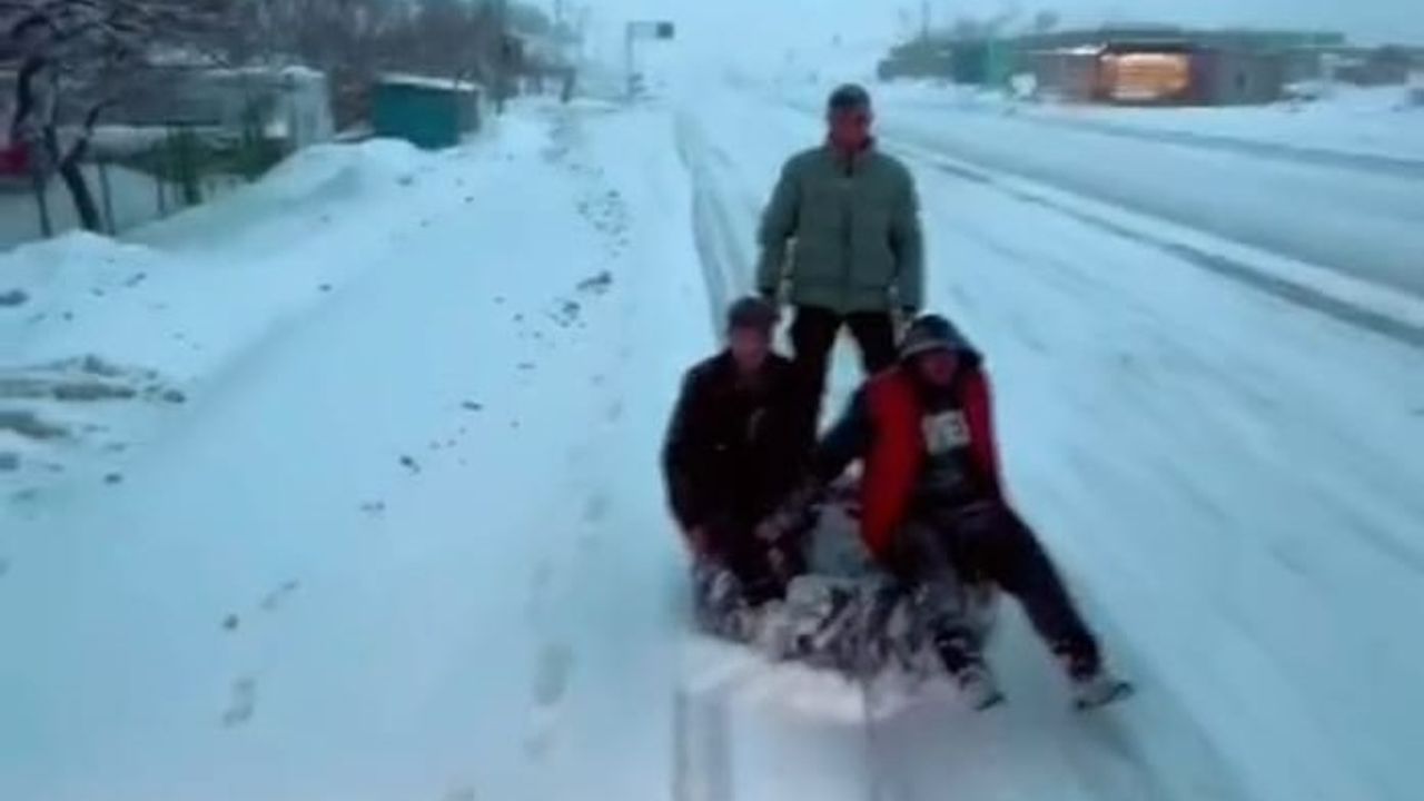 Kentin kırsal bölgelerinde etkisini sürdüren kar yağışı, hayatı olumsuz etkiliyor. Yoğun kar yağışının etkisi altındaki ilde, özellikle batı ve güney kesimlerinde yaşam zorlaşırken, gençler karın keyfini farklı bir şekilde yaşadı. Akçadağ ilçesi Kozluca Mahallesi’nde, traktör arkasına bağlanan lastik üzerinde karda sörf yapan üç genç, dakikalar süren heyecan dolu bir yolculukla karın tadını çıkardı. Kar üzerinde lastikte hızla ilerleyen gençler, hem eğlenceli hem de tehlikeli anlar yaşadı.