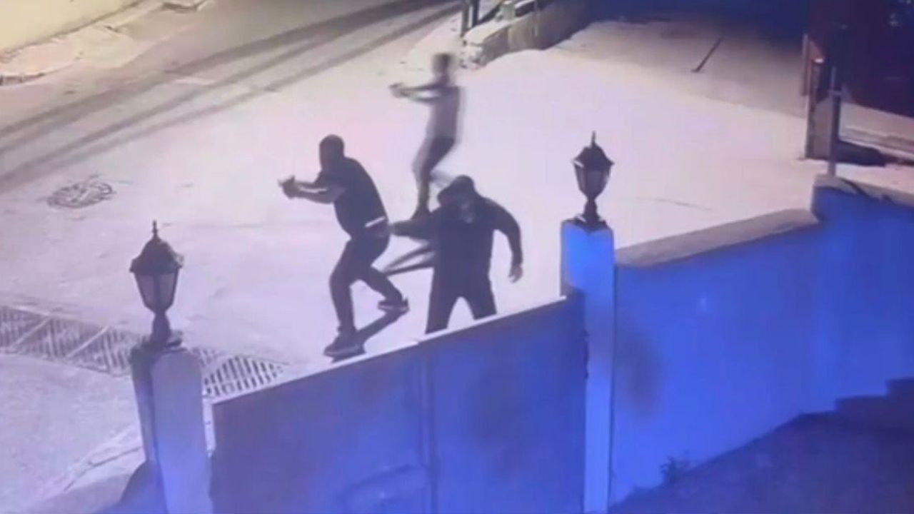 Çevredeki bir iş yerinin güvenlik kamerasına yansıyan görüntülerde, şüphelilerin silahla ateş açtıkları ve ardından hızla olay yerinden kaçtıkları görülüyor.