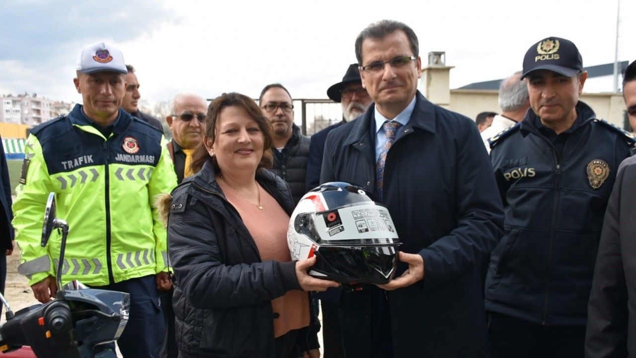 Motosiklet sürücülerine kasklar ise İlçe Kaymakamı Ali Güldoğan, Belediye Başkanı Mazlum Nurlu, İlçe Emniyet Müdürü Burhan Demirkıran, İlçe Jandarma Komutanı Binbaşı Doğukan Karaaslan, İlçe Milli Eğitim Müdürü Mahmut Yenen, Şoförler ve Otomobilciler Esnaf Odası Başkanı Samet Balgönül tarafından teslim edildi.
