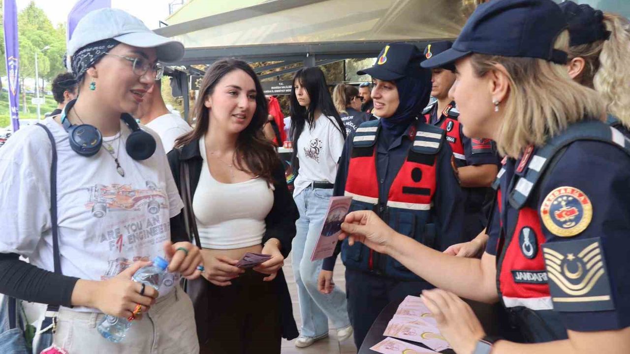 Manisa İl Jandarma Komutanlığı Aile İçi Şiddetle Mücadele ve Çocuk Kısım Amirliği, Celal Bayar Üniversitesi 2025-2026 Eğitim-Öğretim yılı açılışında binlerce öğrenciye kadına yönelik şiddetle mücadele kapsamında bilgilendirme yaptı.