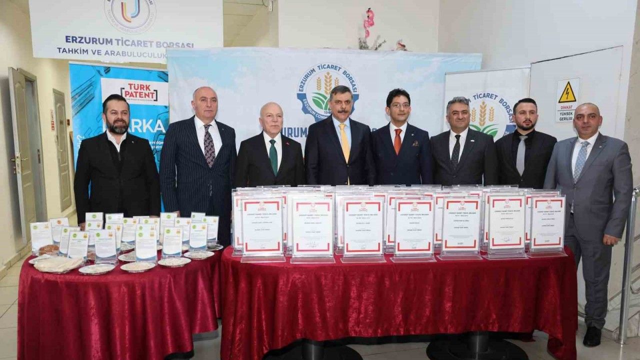 Erzurum Valisi Mustafa Çiftçi, Büyükşehir Belediye Başkanı Mehmet Sekmen, Tekman Kaymakamı Hasan Raşit Taşkın, İspir Belediye Başkanı Ahmet Coşkun, Kültür ve Turizm İl Müdürü Ahmet Yer, ETSO Başkanı Saim Özakalın, Sanayi ve Teknoloji İ Müdürü Ender Cihantimur, Kosgeb İl Müdürü Lütfullah Göktaş, Kamu Kurum Kuruluşları ile STK ve Sektör temsilcilerinin katılımıyla gerçekleştirilen program çerçevesinde "Coğrafi İşaretli Ürünler" noktasında Türkiye’de 3. kent olan ve en çok Coğrafi Tescil İşaret Belgesine sahip kurum olan Erzurum Ticaret Borsası Yönetim Kurulu Başkanı Hakan Oral’a, Türk Patent ve Marka Kurumu Başkanı tarafından, Erzurum Patates Boranisi, Erzurum Babaanne Pastası, Erzurum Kuru Kayısı Kaysefesi, Hınıs Köftesi Coğrafi İşaret belge takdiminde bulundu.