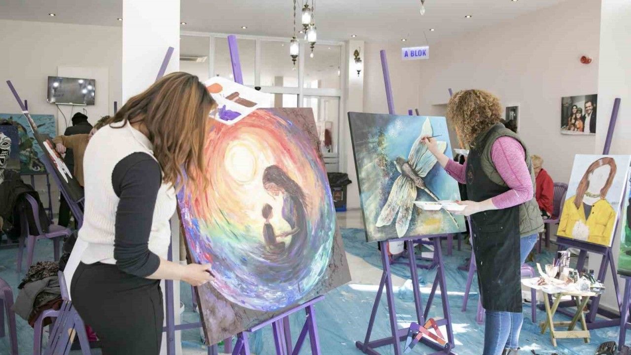 Seda Yılmaz, kadınlarla bir arada olmanın ve üretmenin gururunu yaşadıklarını belirterek, "Resim yapmanın insanlara verdiği en önemli duygu, herkesin bir şeyler üretmenin heyecanıyla kendi dünyasına dalıyor olması. Başka bir şey düşünmüyorsunuz. Hem keyif aldık, hem ürettik" dedi.