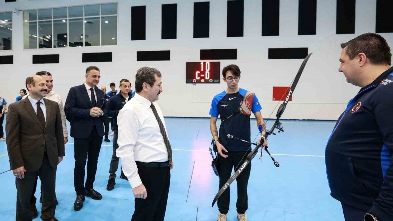 Ziyaretin sonunda Gazoz, Vali Tavlı’nın ok atmasına yardımcı oldu.