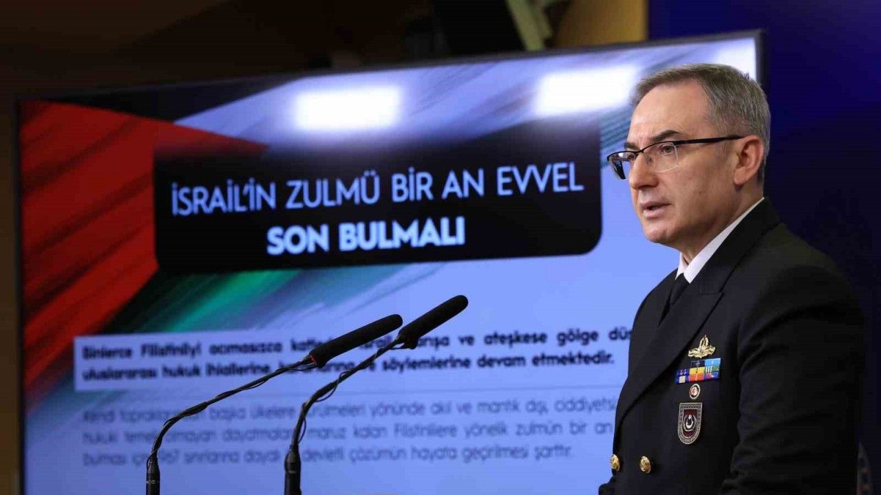 İsrail’in uluslararası hukuk ihlallerine, kararlarına ve söylemlerine devam ettiğini dile getiren Tuğamiral Aktürk, "Kendi topraklarından başka ülkelere sürülmeleri yönünde akıl ve mantık dışı, ciddiyetsiz ve hiçbir hukuki temeli olmayan dayatmalara maruz kalan Filistinlilere yönelik zulmün bir an evvel son bulması için 1967 sınırlarına dayalı iki devletli çözümün hayata geçirilmesi şarttır" dedi.