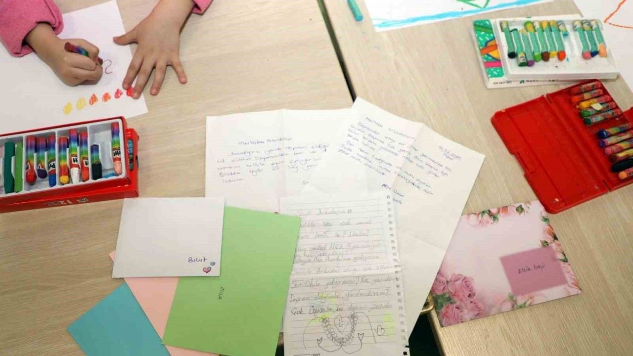 Aileleriyle birlikte mektuplar yazan ve sınıflarında duygularını resimlere döken çocuklar, depremden etkilenen yaşıtları için ev ve oyun parkı dileğinde bulundu. Sevgilerini, gülümseyen kalp ağaçlarıyla resmeden miniklerin bu anlamlı mesajları, Hatay’daki çocuklara moral olması için oyuncak kolilerine yerleştirildi.