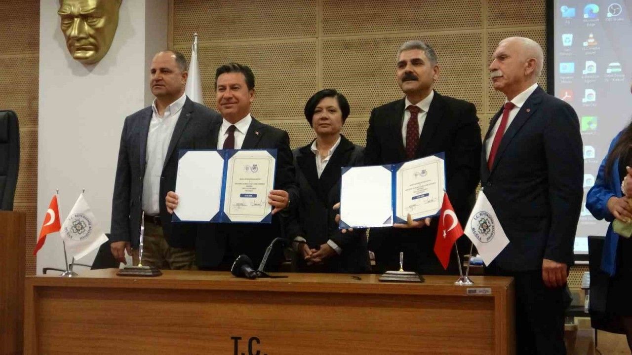 Muğla Büyükşehir Belediyesi ile DİSK Genel-İş Muğla 2 No’lu Şubesi arasında Toplu İş Sözleşmesi Protokolü imzalandı. Türkan Saylan Çağdaş Yaşam Merkezi’nde gerçekleşen imza törenine Muğla Büyükşehir Belediye Başkanı Ahmet Aras, sendika temsilcileri ve belediye çalışanları katıldı.