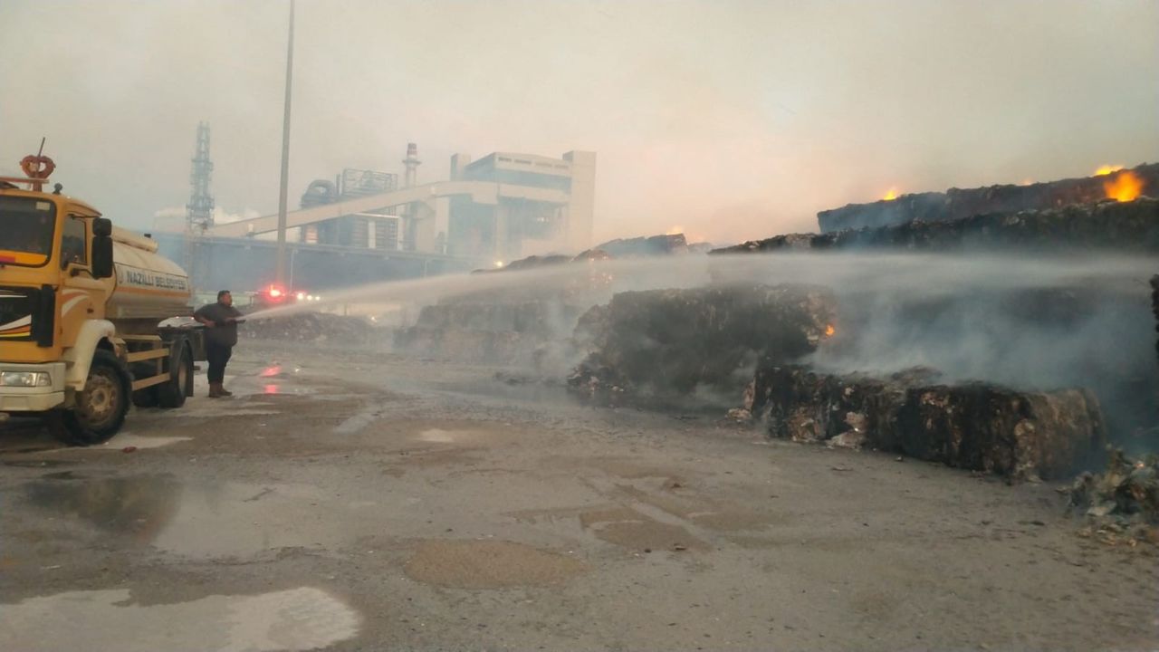 Aydın’ın Söke ilçesinde bir kağıt fabrikasında çıkan yangına müdahale sürerken, Nazilli Belediyesi de söndürme çalışmalarına destek verdi.