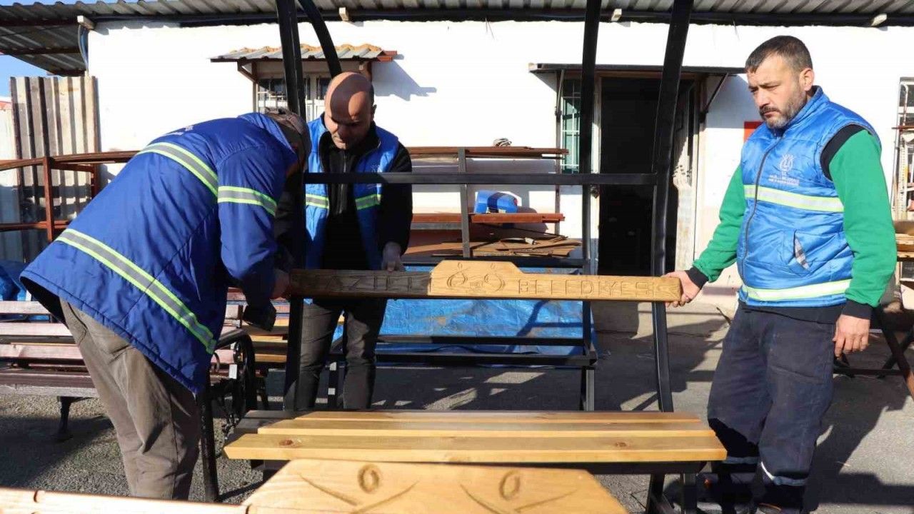 Nazilli Belediyesi Park ve Bahçeler Müdürlüğü ekipleri, ilçe genelinde vatandaşların daha rahat vakit geçirebilmesi için yeni bank yapım çalışmalarına başladı.