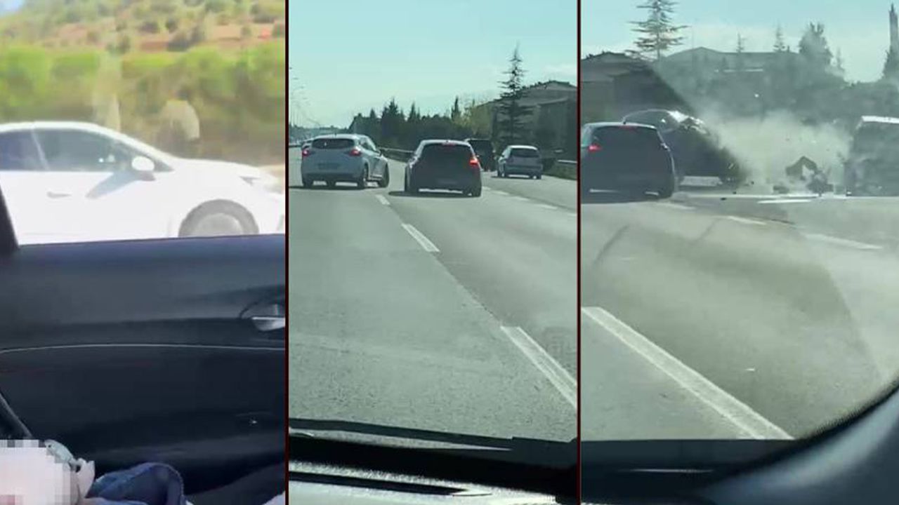 Ani fren yaparak ve makas atarak ilerleyen sürücü, ailenin bulunduğu otomobili seyir halindeyken tehlikeye soktu. Bir süre böyle devam eden yolculuk sonrasında maganda sürücü, çocuklu ailenin aracıyla birlikte toplam 5 araca çarparak kaza yaptı. O anlar, sıkıştırılan aile tarafından cep telefonu kamerası ile görüntülendi. Görüntülerde araçta bebek ile çocuğun olduğu görülürken, kazaya ilişkin anlar yer aldı.