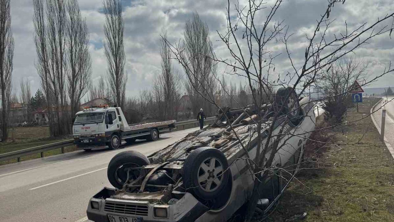 Afyonkarahisar’da kontrolden çıkarak orta refüje devrilen otomobilin sürücüsü hafif şekilde yaralandı.