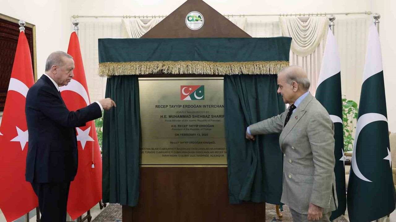 Cumhurbaşkanı Recep Tayyip Erdoğan, Pakistan’ın başkenti İslamabad’a resmi ziyaret gerçekleştiriyor. Pakistan Başbakan Şahbaz Şerif, ziyaret çerçevesinde Cumhurbaşkanı Erdoğan’a İslamabad’da işlek bir caddede yer alan ve Recep Tayyip Erdoğan isminin verildiği kavşağın tabelasını takdim etti.