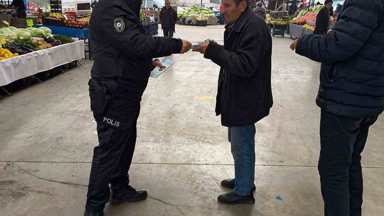 DÜZCE(İHA) – Düzce’nin Gümüşova ilçesinde polis ekipleri halk pazarında vatandaşları dolandırıcılık olaylarına karşı hem uyardı hem de uyarıcı el broşürü dağıtıldı.