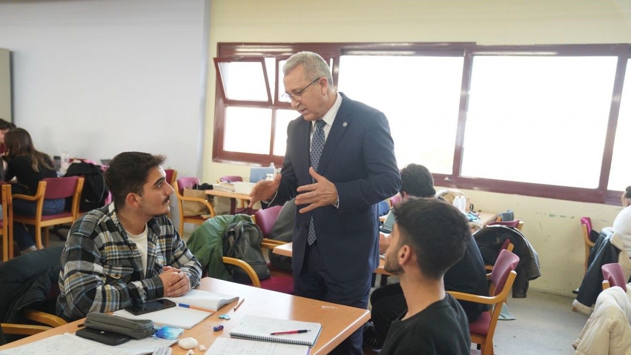 Ege Üniversitesi Rektörü Prof. Dr. Necdet Budak, sınav dönemlerinde 7/24 ev sıcaklığında hizmet veren Merkez Kütüphanesinde final sınavlarına hazırlanan öğrencileri ziyaret ederek başarılar diledi.