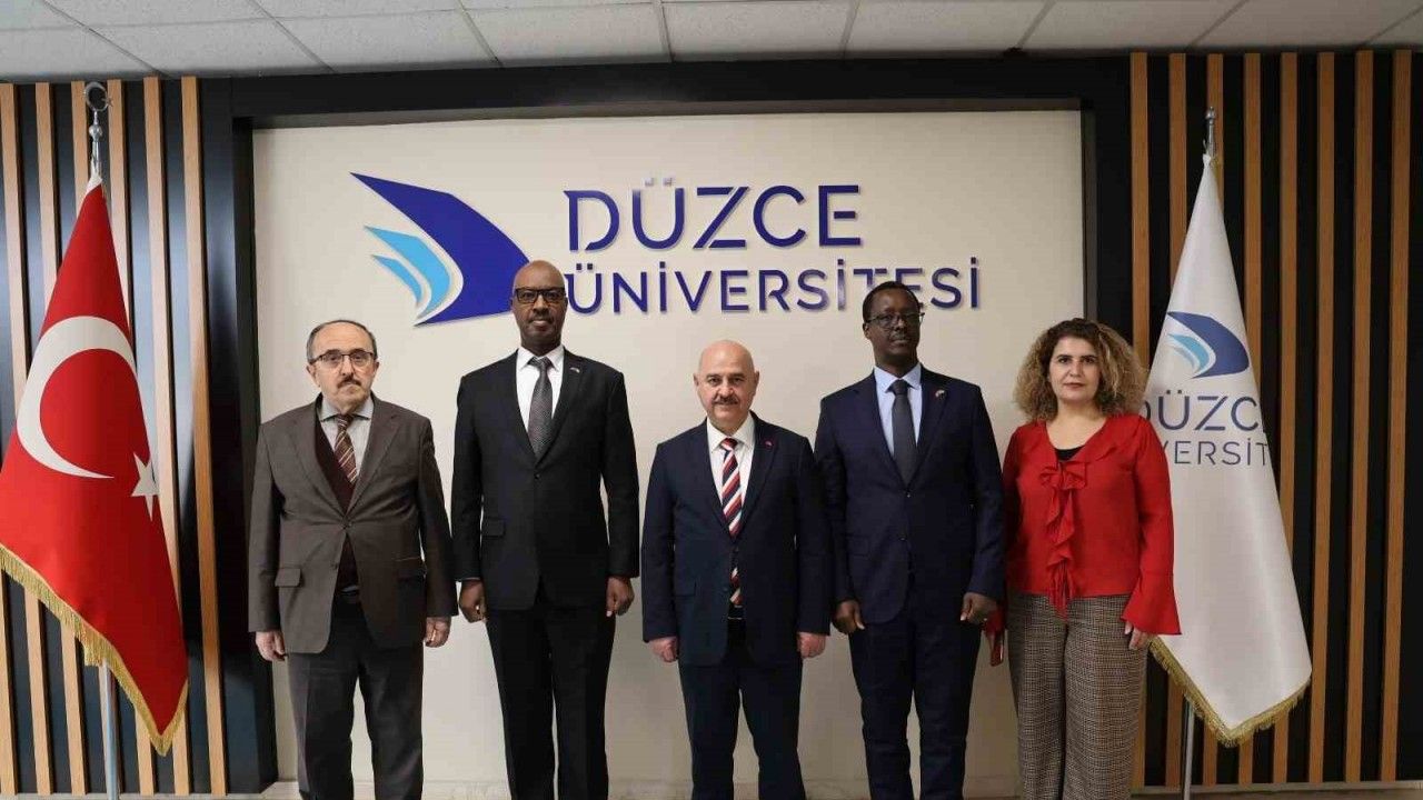 Ruanda Büyükelçisi Charles Kayonga, Düzce Üniversitesi’ni ziyaret ederek Rektör Prof. Dr. Nedim Sözbir ve Ruandalı uluslararası öğrencilerle bir araya geldi.