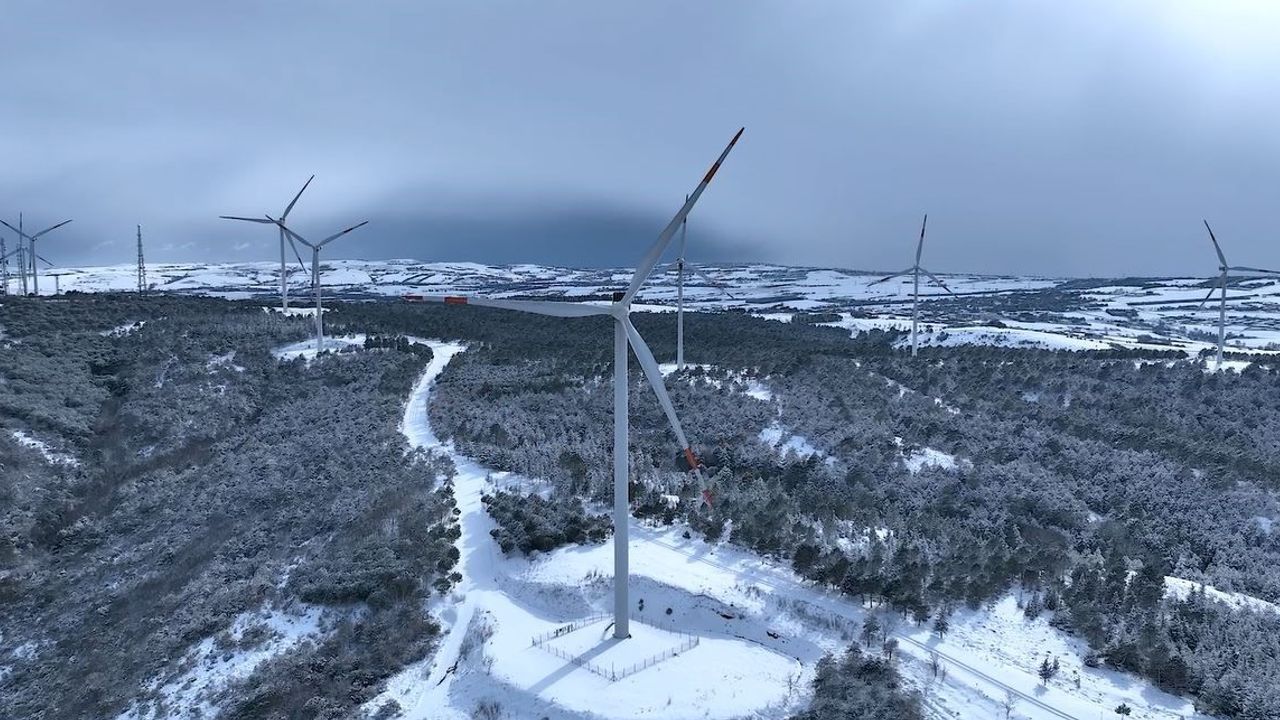 İstanbul’da etkili olan kar yağışının ardından Çatalca’da bulunan rüzgargüllerinin kış manzarası, kartpostallık kareler oluşturdu.
