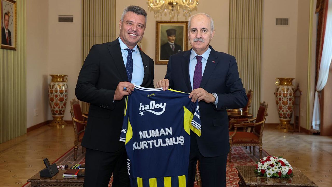 Fenerbahçe Başkanı Sadettin Saran ve Yönetim Kurulu Üyesi Taner Sönmezer, Türkiye Büyük Millet Meclisi (TBMM) Başkanı Numan Kurtulmuş’u ziyaret etti. Başkan Saran, ziyaretin sonunda TBMM Başkanı Numan Kurtulmuş’a isminin yazılı olduğu Fenerbahçe formasını takdim ederken, Numan Kurtulmuş da bu nazik ziyaretten dolayı teşekkür etti.