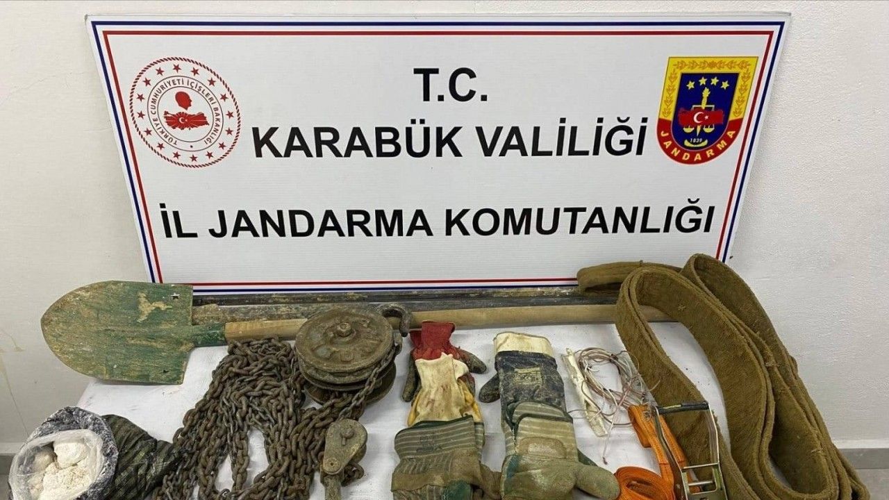 Safranbolu Cumhuriyet Başsavcılığı koordinesinde Karabük İl Jandarma Komutanlığı ekiplerince yapılan çalışmalarda kaçak kazı yapan 3 kişi suçüstü yakalandı. Operasyonda birer adet caraskal, spanzet, kürek, 5 çift eldiven, 2 adet manivela, 5 metre halat, 5.5 metre zincir ve yaklaşık 2 kilogram patlayıcı olduğu değerlendirilen beyaz toz ele geçirildi. Jandarmadaki işlemlerinin ardından adliyeye sevk edilen şüpheliler, adli kontrol şartıyla serbest bırakıldı.