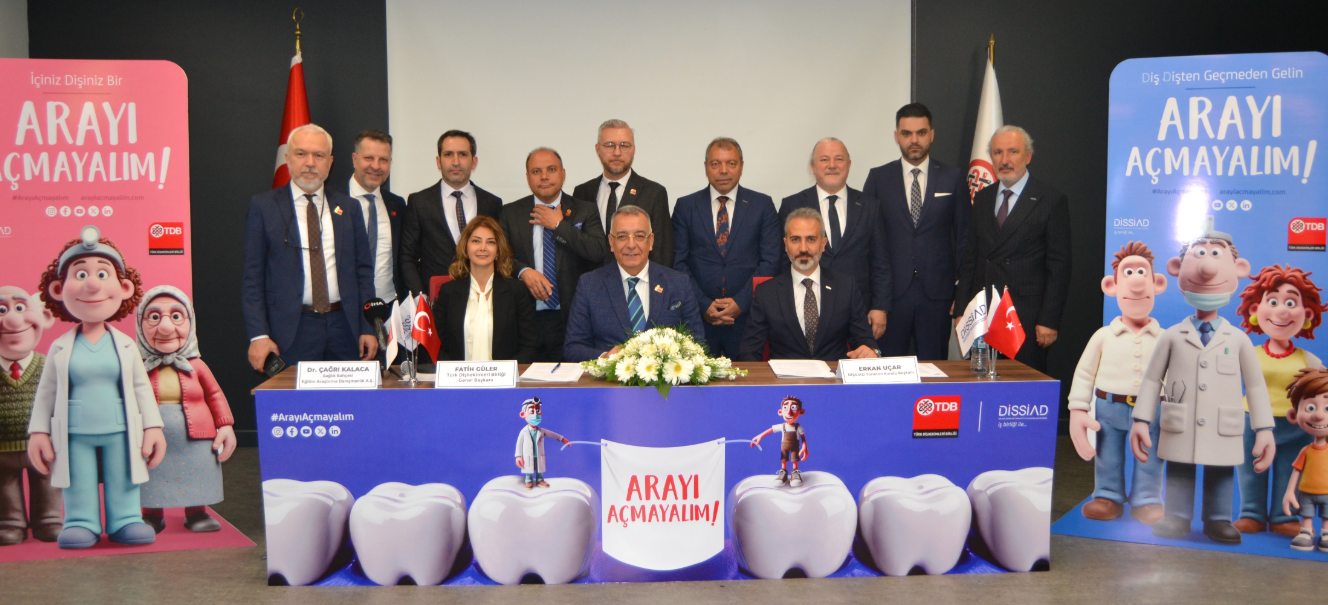 TDB Genel Başkanı Fatih Güler, imza töreninde yaptığı konuşmada şu ifadeleri kullandı: “Bu anlamlı projenin ana hedefi yaşam boyunca yani gencinden, artan yaşlı nüfusa kadar ağız ve dişleri korumaya odaklanmaktır. Toplumun ağız diş sağlığı eğitimi ve ağız hastalıkları ve ağızdaki durumlara ilişkin bilgilendirilmesi, temel ağız diş sağlığı hizmetleri, koruyucu önlemler ve programlar hakkında bilinçlendirilmesi amaçlanmaktadır. Küresel boyutta dünya nüfusunun yüzde 90’ı çürük, dişeti hastalıkları ve ağız kanserine kadar uzanan ağız hastalıkları yönünden, ciddi bir risk altındadır. 19. ve 20. yüzyıllarda diş çürüğü dünya genelinde bir epidemik salgın olarak tanımlanmış ve halen günümüzde de nezleden sonra dünyada en yaygın olarak görülen ikinci hastalık olarak kabul edilmektedir. Bu bağlamda bireyler sadece düzgün fırçalama ve diş ipi kullanma, şekerli yiyecekleri kesme, sağlıklı yemek yeme ve kontrol için 6 ayda bir için DİŞHEKİMİNİ ziyaret ederek, iyi bir ağız sağlığına sahip olabilirler. Bu noktada diş ve dişeti hastalıklarının önlenebilir hastalıklardan olduğu gerçeğinden hareket ederek; toplumun bilgilendirilmesi ve ağız-diş bakımı konusunda alışkanlık oluşturulması konusunda hükümetlere, sağlık alanındaki meslek kuruluşlarına, eğitim kurumlarına, gönüllü sağlık kuruluşlarına ve sağlık endüstrisine sorumluluklar düşmektedir. Başta merkezi yönetim olmak üzere; yerel yönetimler, Dişhekimliği Fakülteleri, sağlık meslek birlikleri, sivil toplum kuruluşları ve sağlık endüstrisi vb yapılar ağız ve diş sağlığının iyileştirilmesi konusunda mevcut ürün ve süreçlerde önemli teknolojik yeniliklerin ağız sağlığının geleceğini şekillendirmedeki rolünü tartışarak gerçekçi ve sürdürülebilir projeler üzerinde çalışmalıdırlar. Türk Dişhekimleri Birliği ve Dişhekimleri Odaları olarak ağız diş sağlığı politikaları üretme ve hayata geçirmede tüm bileşenlerle ortak çalışmaya, üzerimize düşeni yapmayı dün olduğu gibi bugün de hazır olduğumuzu kamuoyunun bilgisine sunarız. DİŞSİAD’ın destekleri ile hayata geçireceğimiz ‘Arayı Açmayalım’ projemizle ülkemizde diş ve dişeti rahatsızlıklarının önlenebilir olduğunu halkımıza en etkin medya araçları vasıtası ile aktarmaya ve bir bilinç oluşturmaya gayret edeceğiz.”