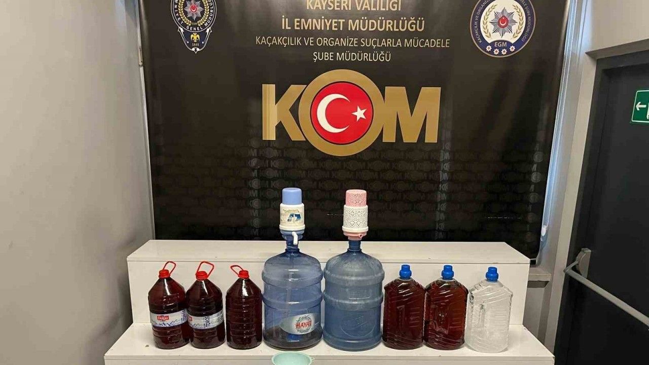 Kayseri’de kargoyla getirdiği etil alkolleri sahte alkol yaparak piyasaya sürmeye çalışan bir kişi yakalandı. Polis ekiplerince yapılan operasyonda 31 litre sahte alkol, 20 litre etil alkol ele geçirildi.