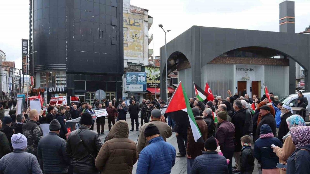 Cuma namazı sonrası bir araya gelen Samsunlular, İsrail’in Filistin’e yönelik uyguladığı soykırım ile ABD’nin "sürgün" planına tepki göstererek "Gazze boşaltılamaz" mesajı verdi.
