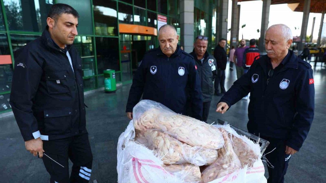 Şanlıurfa’dan Antalya’ya otobüsle gönderilen 300 kilogram sakatata el konulurken, taşıyıcı firmaya cezai işlem uygulandı.